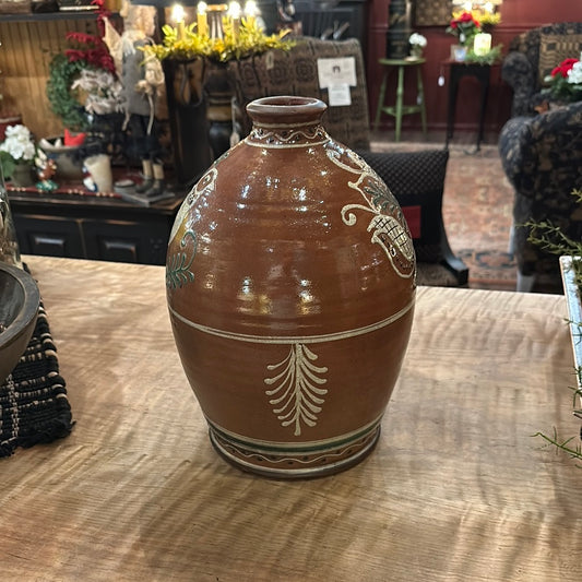 David T Smith Wood Fired Bird and Fern Jug