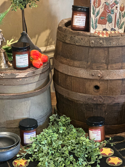 Enjoy browsing through our selection of amazing, highly scented jar candles and grungy, primitive candles in delicious scents. In this collection you'll also find our popular battery operated candles in many styles, sizes and colors. Browse our selection of highly scented room sprays, and reed diffusers. Our Jar candles are poured in Ohio and our grungy primitive candles are handcrafted in Lancaster, PA. As you know, we offer our customers only the best and our candles are NO exception. We offer you only the BEST, highly scented, clean, long burning jar candles Scents include our favorites such as orange spice, sage and citrus, pumpkin pie, apple bourbon, pancakes , butter maple syrup, hot apple pie and blueberry pancakes, just to name a few! If you prefer candle crumbs for your tart burner, we have many delicious scents for you to try! You will LOVE our candles and accessories!