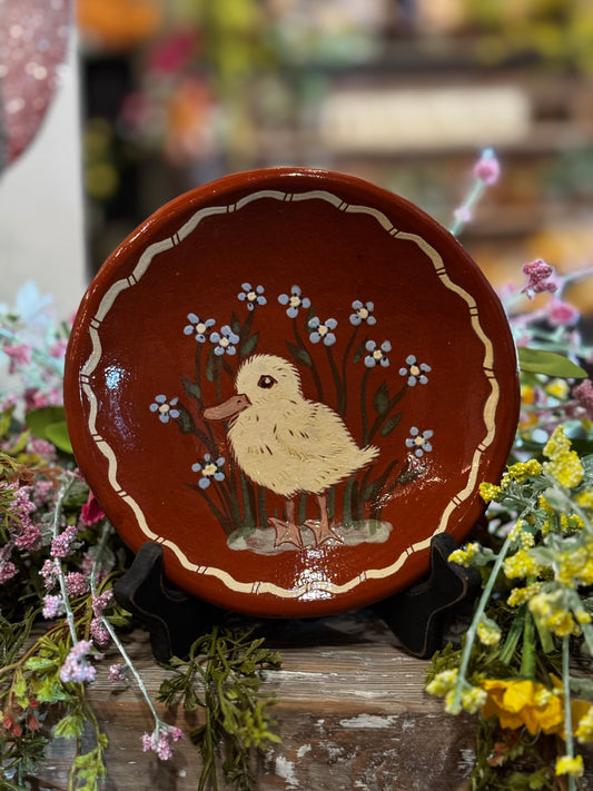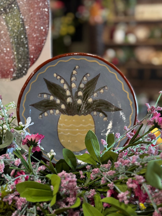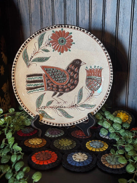 David T Smith Sgraffito Bird & Flowers Plate Spring