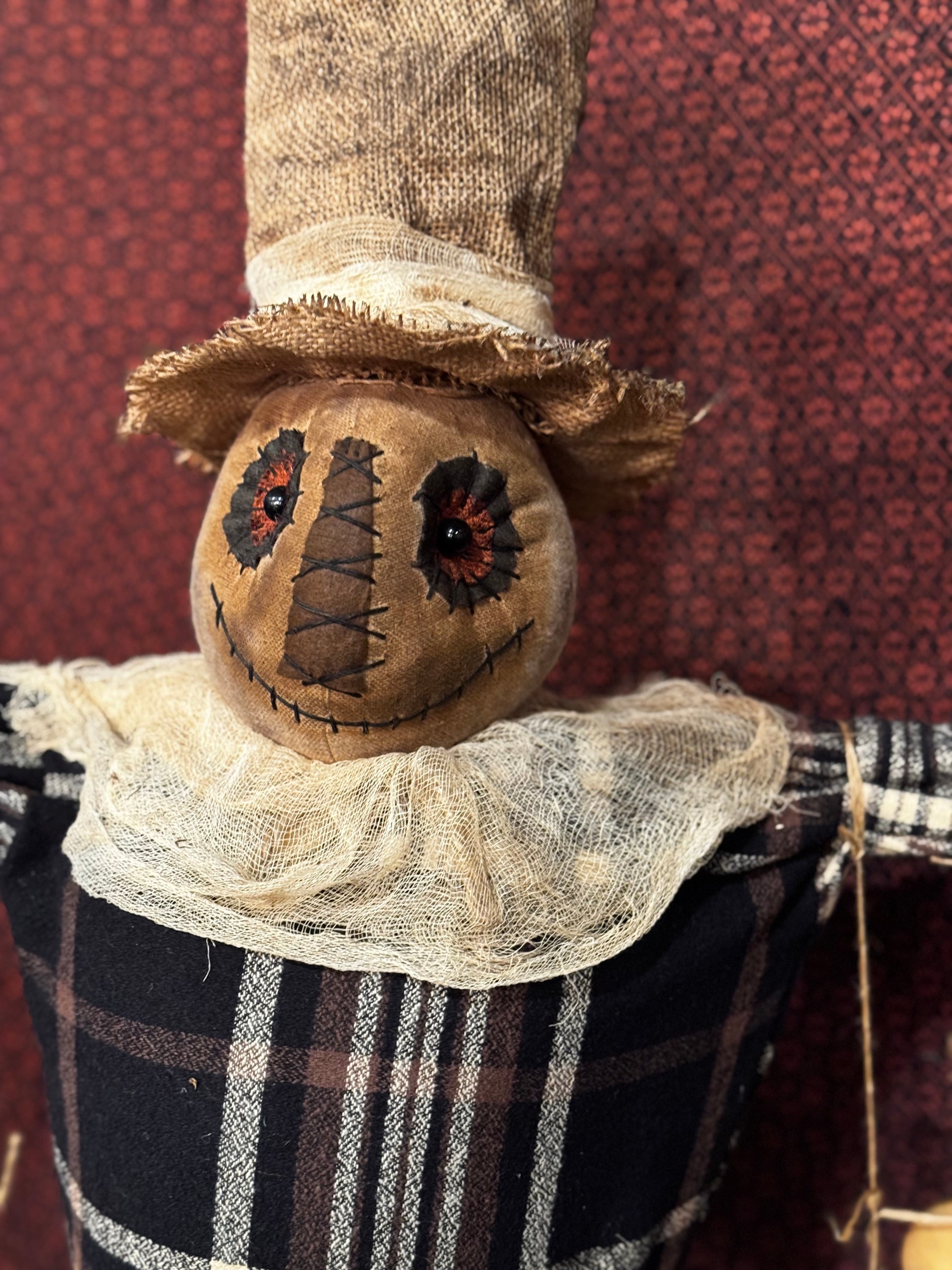 This is one of my absolute favorite scarecrows. I have one from several years ago and it’s a treasured piece. This scarecrow stands. 38 inches tall By 29 inches wide. Each one is handmade so they will slightly vary. Choose your favorite below.