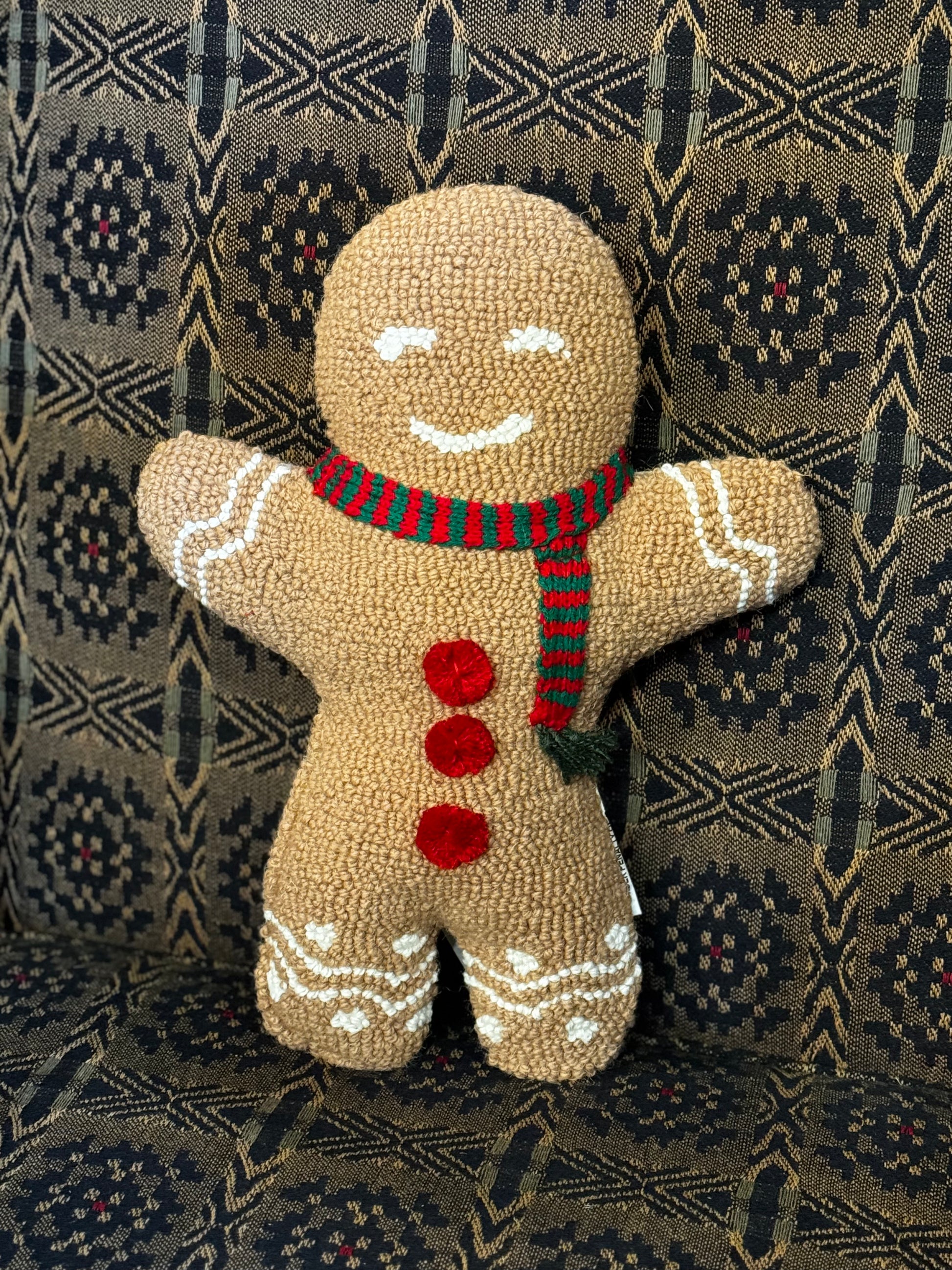 This absolutely adorable hooked rug, imported gingerbread pillow is the perfect accent for any gingerbread lover. I would put a few of these in a basket or on my sofa to add that fun holiday decor.