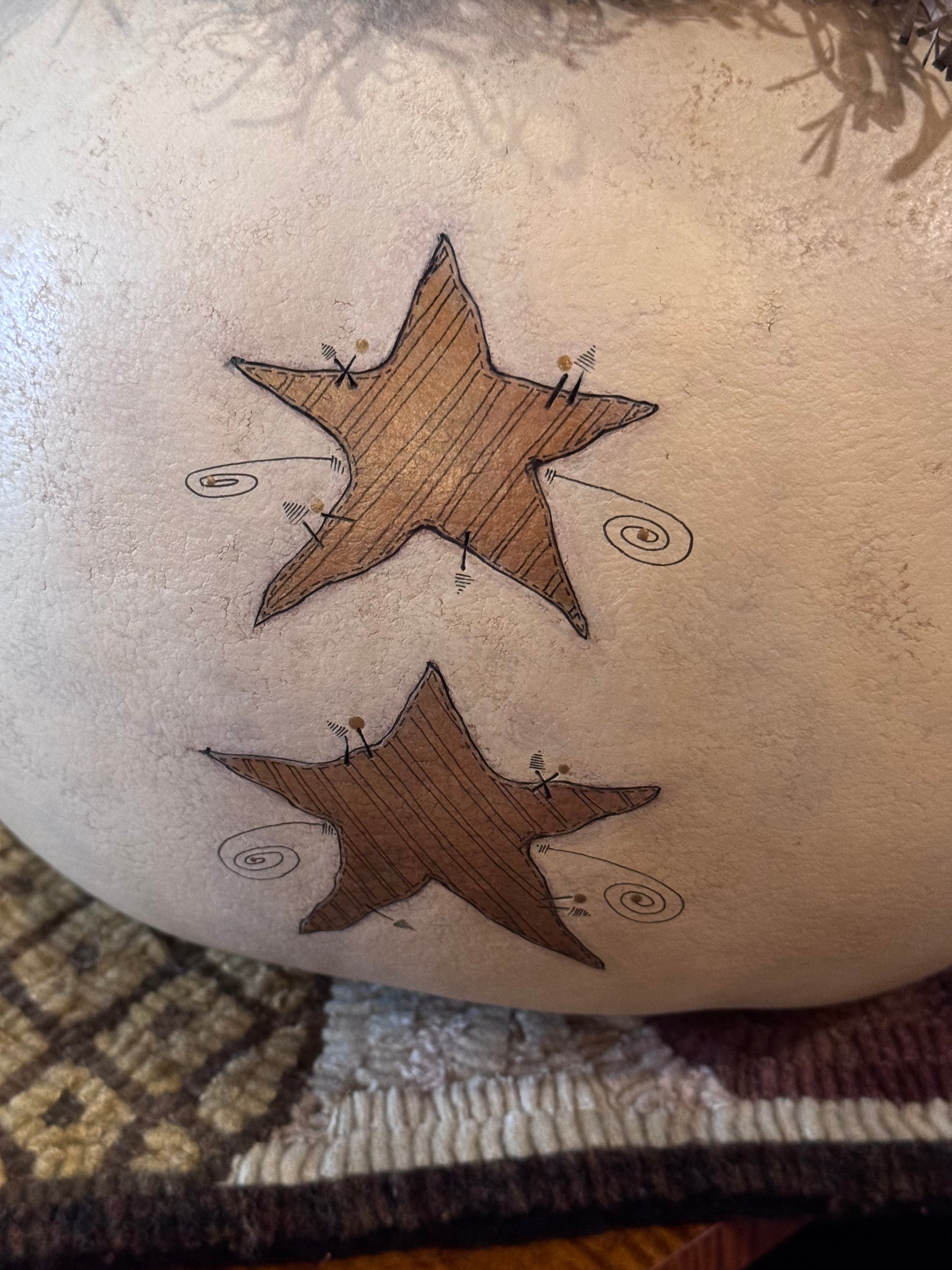 Julie‘s creations are made locally here in North Canton Ohio. Each item she makes his handcrafted so no two items ever look alike. Julie spends most of her free time searching for vintage items as well as a variety of gourds to woodburn then paint. She’s been a Pine Cone exclusive artist for many many years.
