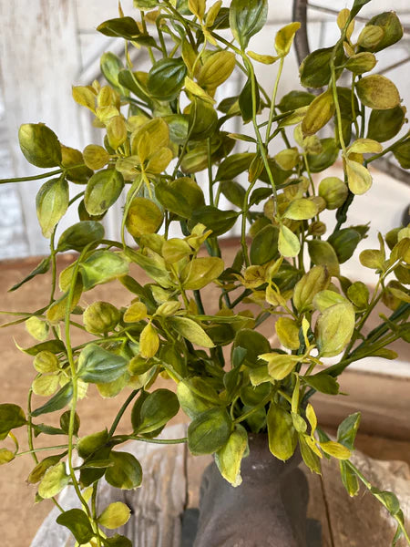 This collection features masses of petite leaves on trailing tendrils. Overall size is 14" | 4.5" inner.
