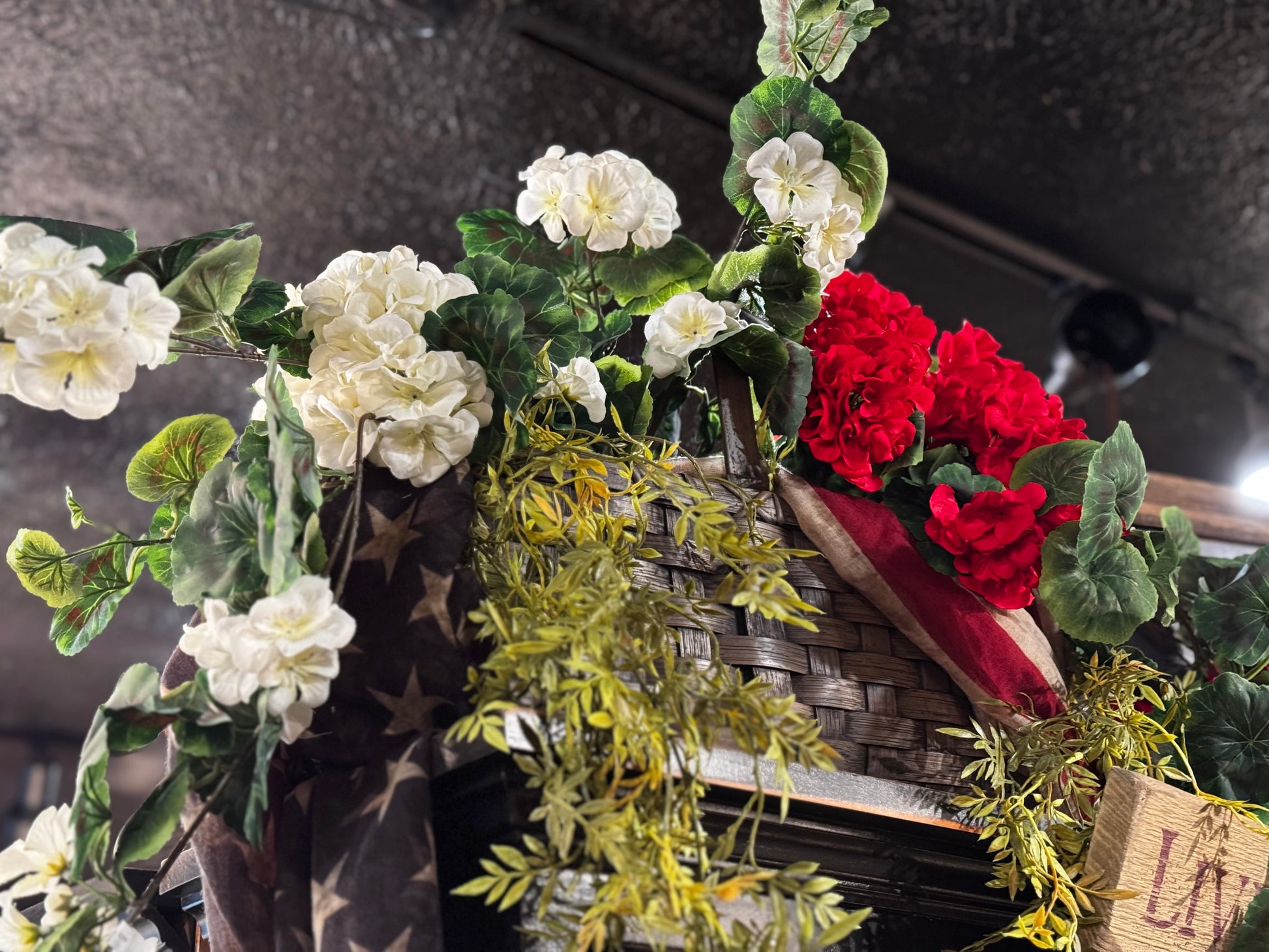 These beautiful hanging geraniums are the perfect addition to your fireplace mantle or large baskets. These are approximately 32 inches long and full of flowers. They look excellent on top of a hutch or a large cupboard. Choose your favorite color.