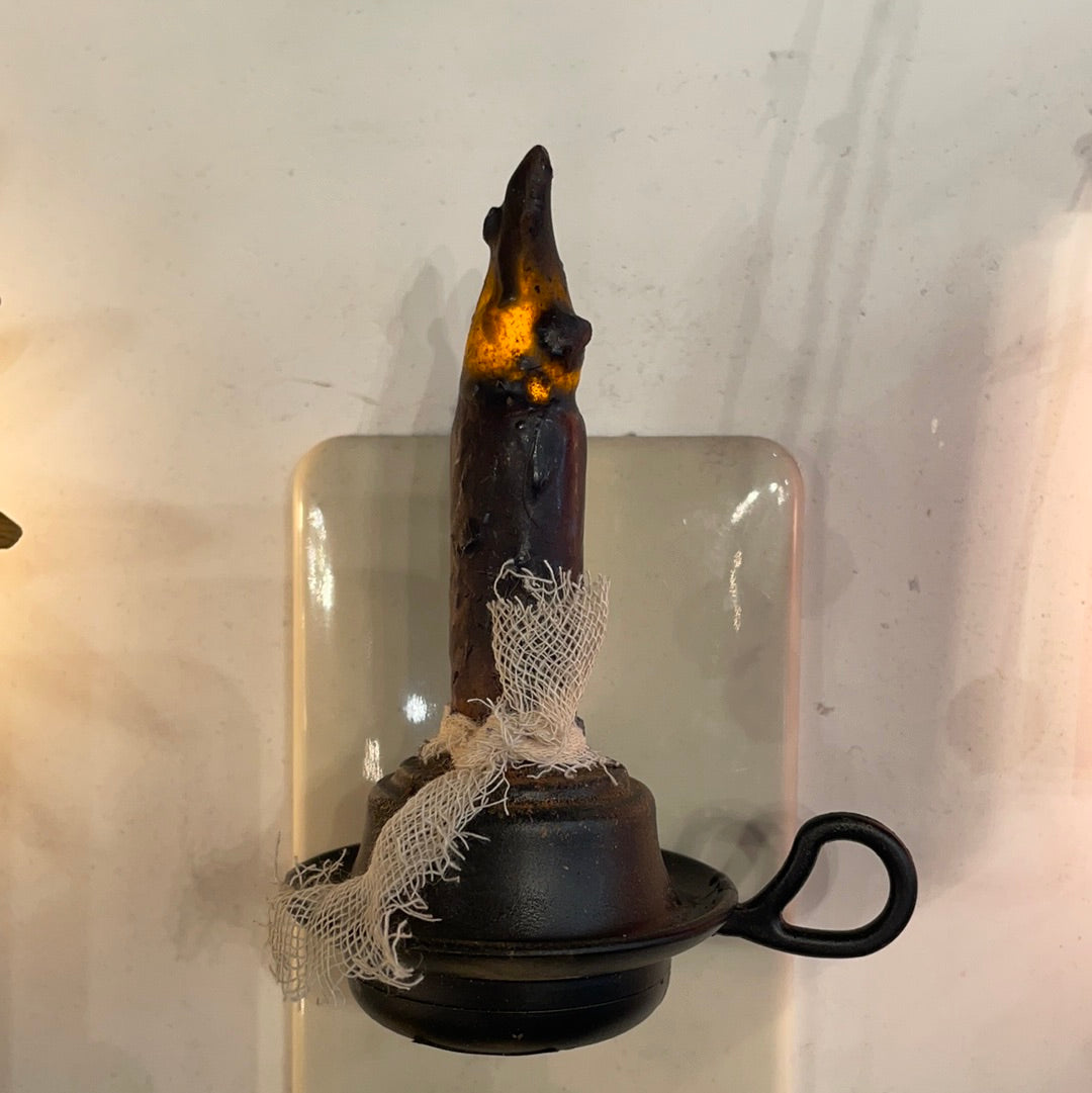 These adorable Primitive nightlight measure 3 inches tall. These nightlight have no replacement bulb option, but are made with an LED bulb to give you many years of use. Each one is hand dipped in a wax to give that Primitive finish. Then they have cheese cloth tied around them .