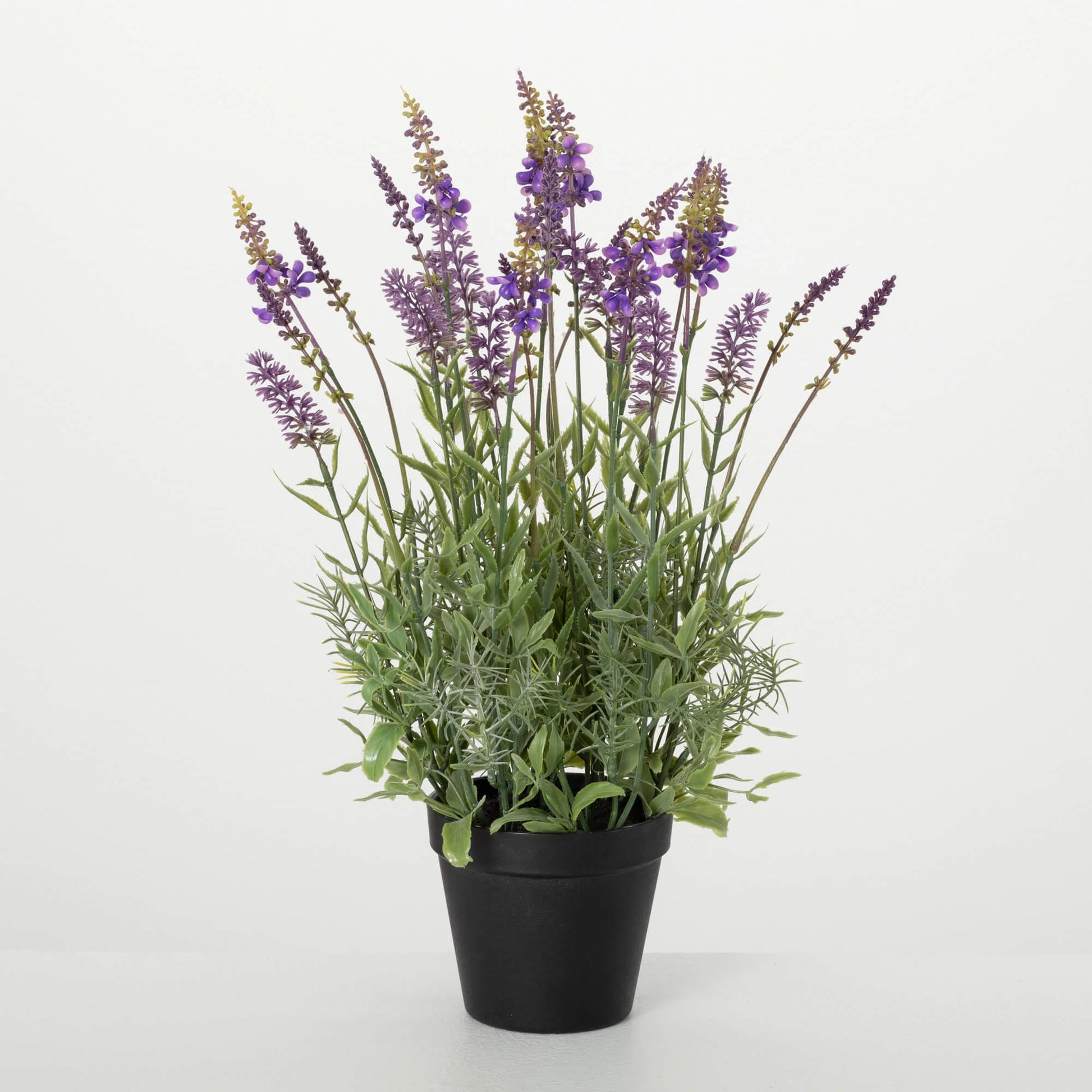Bring the calming feel of lavender into your home with this exclusive Black-Potted Lavender Plant from Sullivans. Unlike fresh flowers that wilt quickly, this "forever" floral will bloom beautifully for years to come, whether displayed in the included plastic pot or inserted into your favorite container. This low-maintenance plant is perfect for the lavender lover who wants to enjoy its natural beauty without the hassle of constant care. Size is 9.75” x 9.75” x 18.5”
