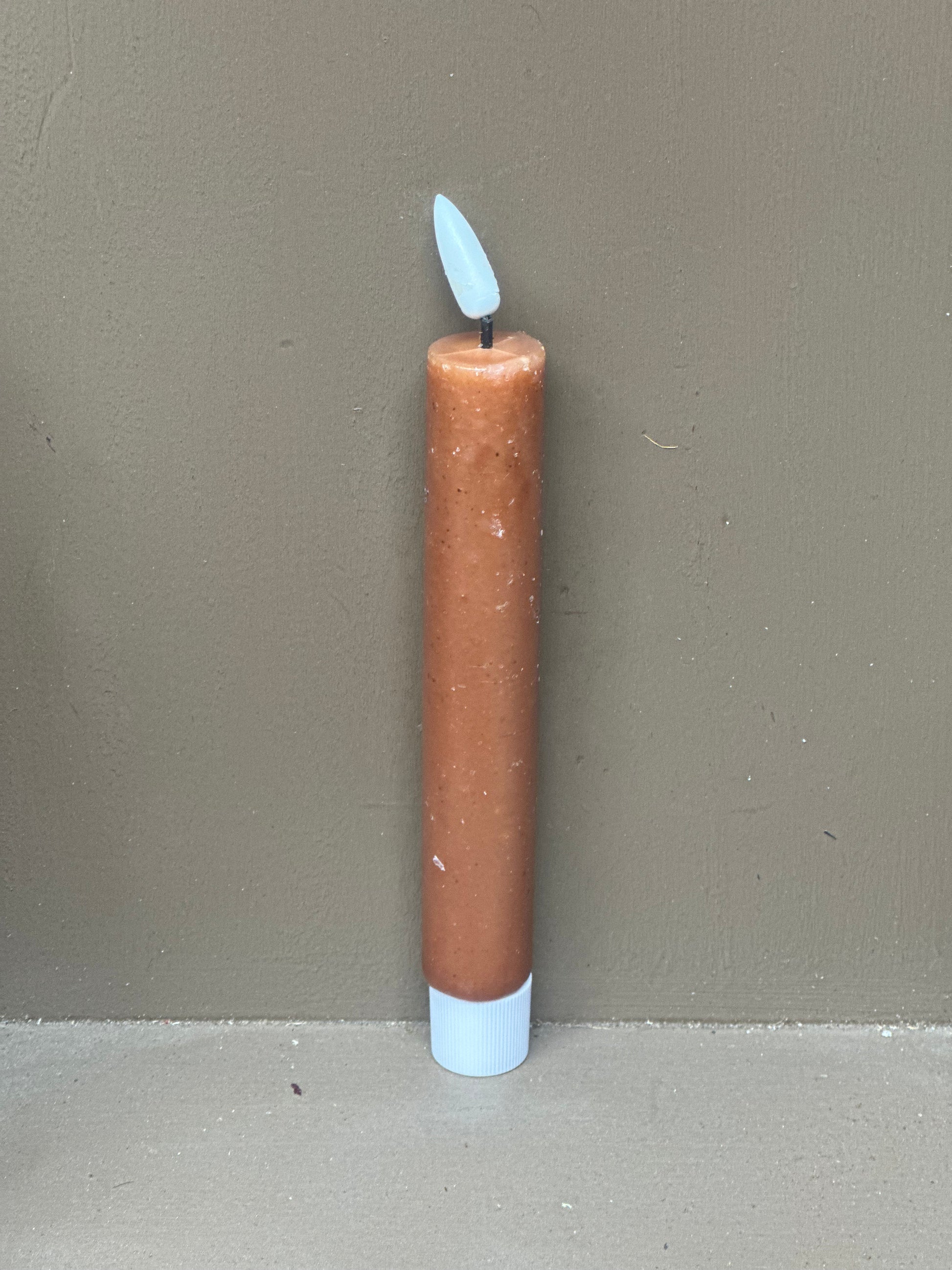 Choose between 2 sizes and 5 colors of taper. These realistic 3D wick candles are on a timer for 6 hours on and 18 hours off. They require 2 AAA batteries that are NOT INCLUDED.