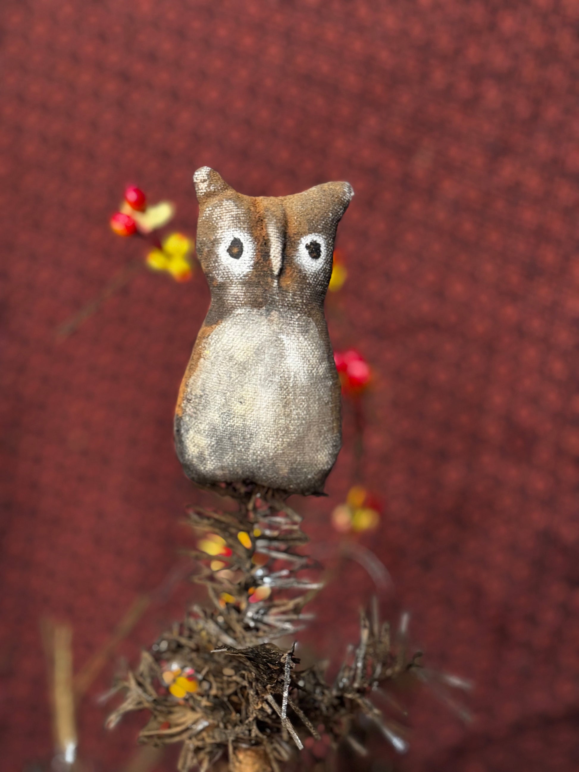 The super fun handmade Halloween trees come in two options. All the ornaments are handmade as well as the tree toppers choose between a primitive crow or an owl. The overall height is approximately 22 inches tall.