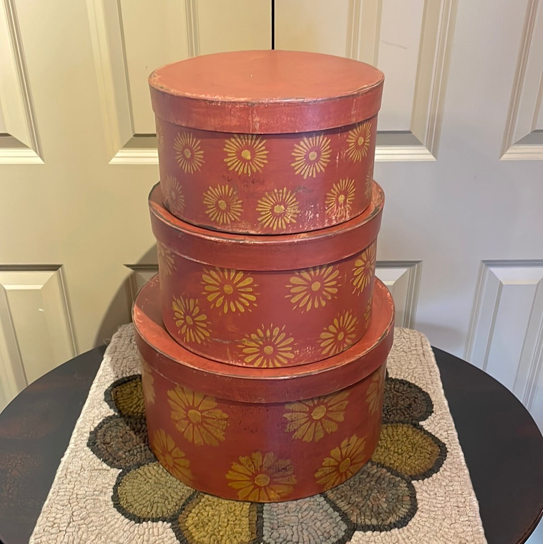 These hand-painted and Pennsylvania papier-mâché boxes are perfect for your Colonial/Primitive home. These boxes are functional because you can put storage inside.